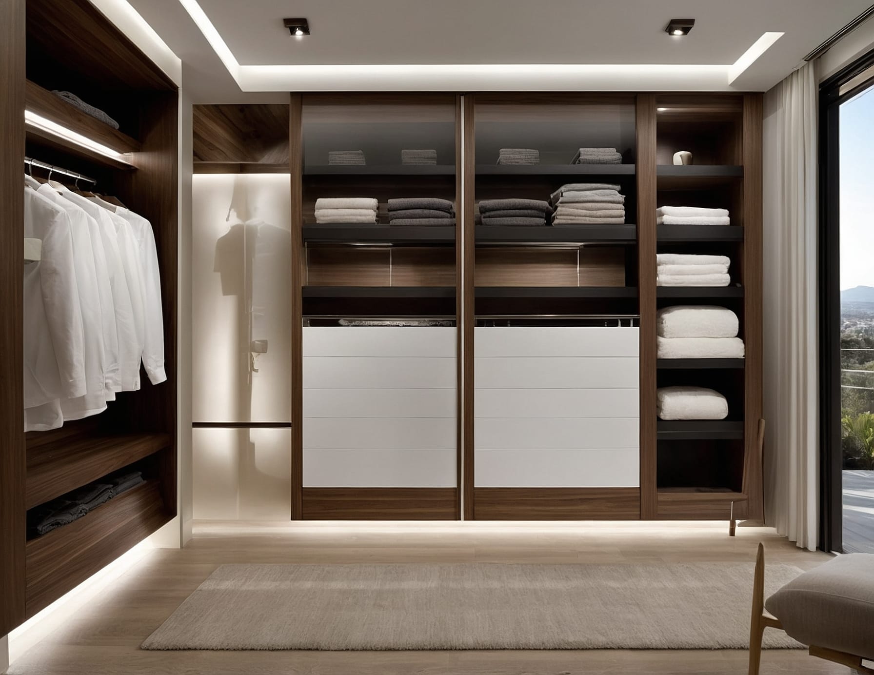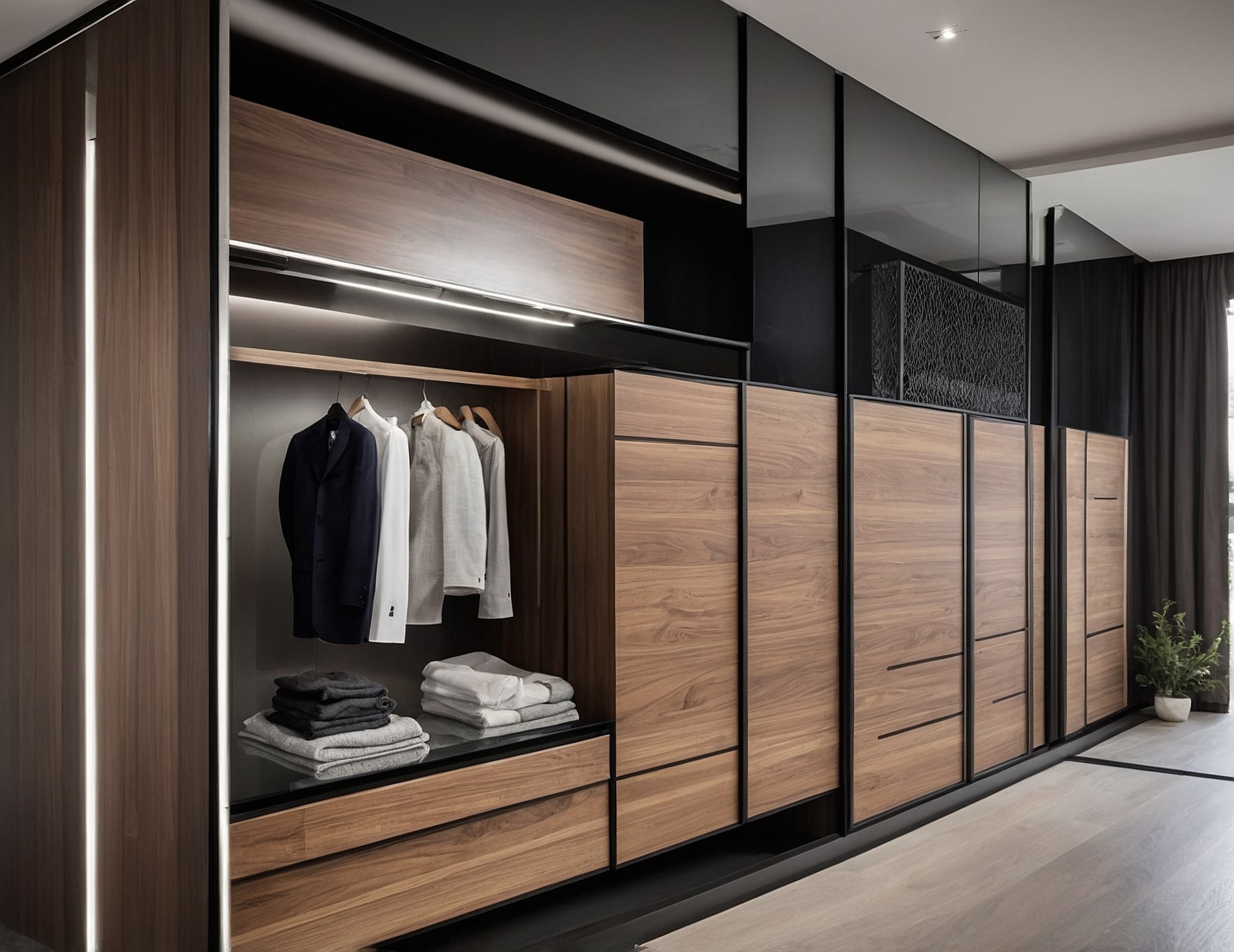 El armario empotrado de nogal combina estilo y practicidad. Diseñado para clientes amantes de lo moderno, ofrece almacenamiento eficiente sin sacrificar la estética. La cuidadosa selección de materiales de alta calidad subraya nuestra destreza en carpintería, convirtiéndose en una pieza central que realza cualquier hogar.